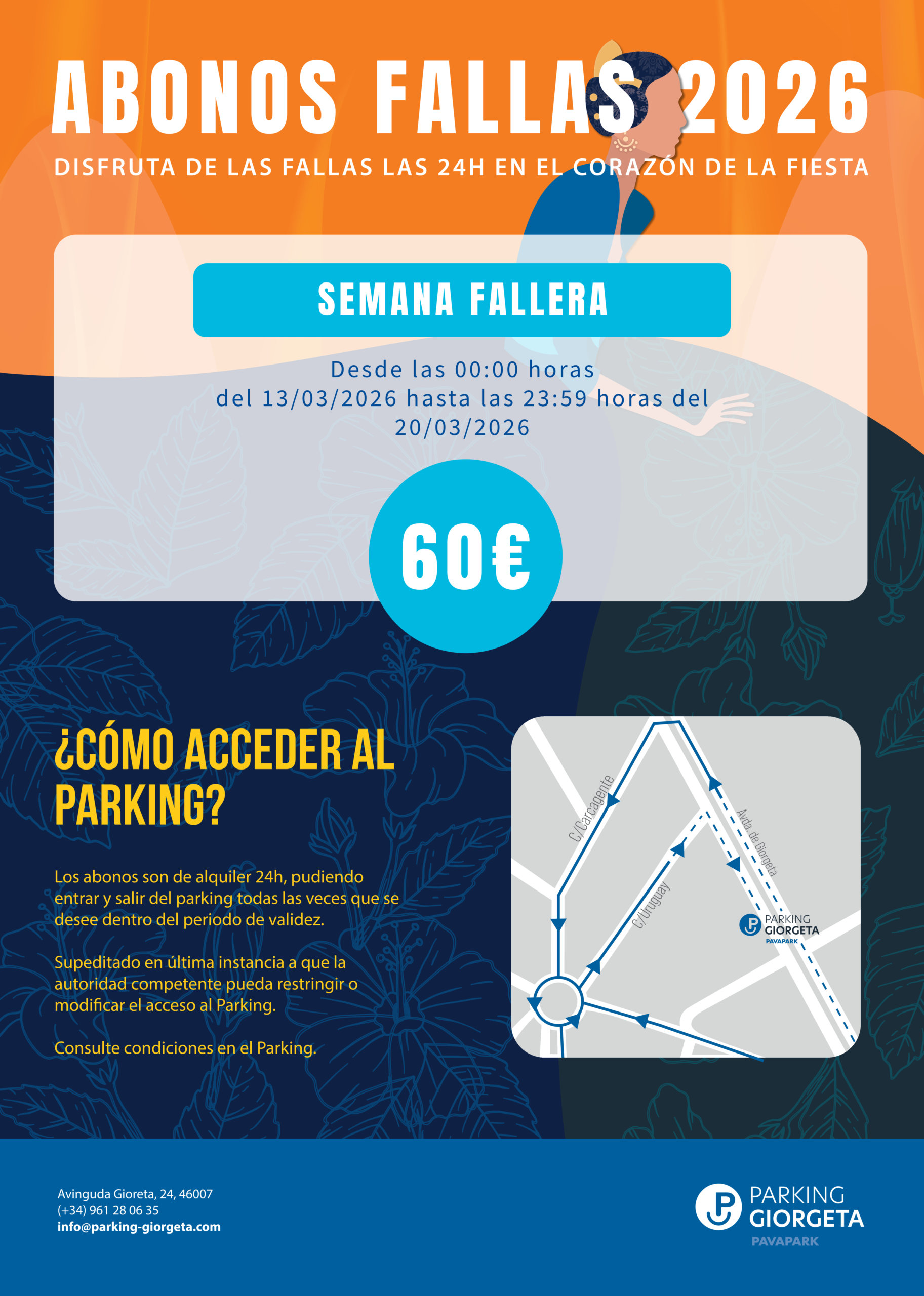 The Giorgeta Parking is located next to the General Directorate of Traffic, the Joaquín Sorolla AVE station, as well as the metro stop of Jesús.